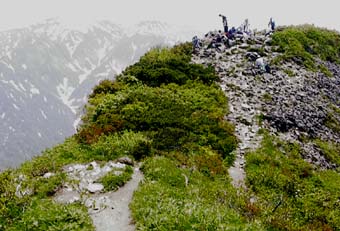 ![]() 雨飾山山頂はこの岩の奥・・・ |