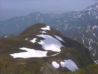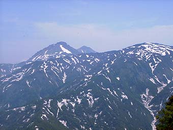 ![]() 妙高山群(左から焼山、火打山、金山) |