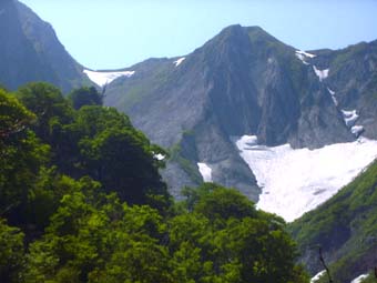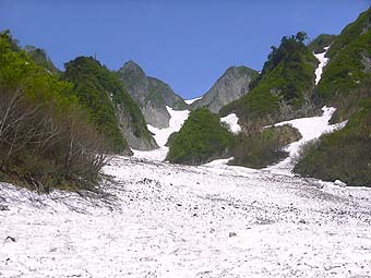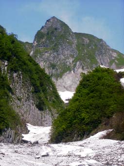 ![]() 荒菅沢は落石多し 布団菱岩峰群が圧巻 |