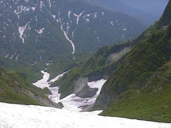 ![]() 笹平から荒菅沢を見下ろす |