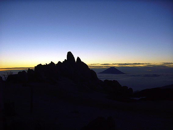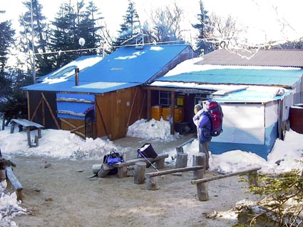 | 小屋について外のベンチでくつろいでいると、ネットの知り合いのラインハルトさん(ハンドルネーム)が後ろから声をかけてきた。お互い5月の燕岳以来の再会を喜び合う。彼とはメーリングリスト等で山岳写真が共通の話題でやりとりしている。私とは逆に明日鳳凰に登るそうだ。日没が近くなり彼の奥さんも含め三脚を3台並べて撮影する。準備している時は色々と話をしていたが撮影している間はお互い無言である。この緊張感もまたいい。 夜叉神小屋は今年から自炊となった様だ。ただし今年はみそ汁とご飯に限り提供出来るとのことである。私は持ってきたフリーズドライのカルボナーラを食べる。なかなかうまい!自炊している時は一人だと寂しいものであったが今日は違う。ラインハルト夫妻と色々と楽しく話をしながらなので時間が経つのが早い。ここの所、単独の山行が続いていたので本当に楽しく過ごせた。 |